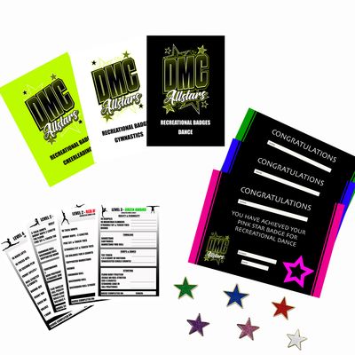 Last season, we introduced our new recreational badge program. This is intended to give our non-competitive athletes a goal to work towards, that will encourage and reward progress. We have a cheerleading badge program and a gymnastics badge program. Athletes can choose to do either, or both. Each program has 6 levels and a corresponding badge colour. The first level is basic and designed to be achievable for complete beginners. The levels then gradually increase in difficulty towards a challenging level 6 badge.